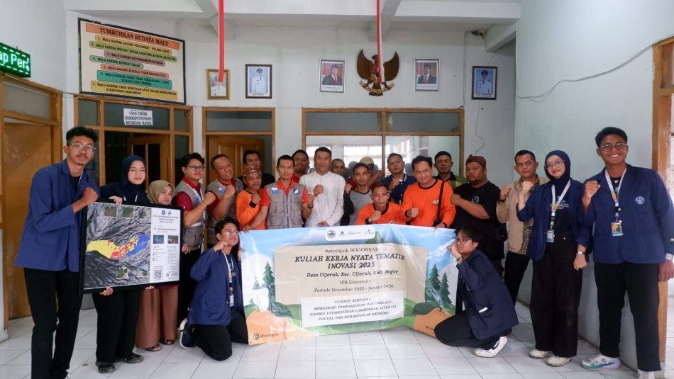 BRO. KABUPATEN BOGOR – Aksi Relawan Mandiri Himpunan Alumni IPB (ARM HA-IPB) berkolaborasi dengan tim Kuliah Kerja Nyata Tematik (KKNT) Inovasi IPB University memperkuat ketangguhan Desa Cijeruk melalui penyusunan konsep mitigasi bencana longsor. Program ini dipaparkan dalam kegiatan Sosialisasi Antisipasi Bencana Longsor Cijeruk (ABC) di Kantor Desa Cijeruk, Kamis (15/1/2026).