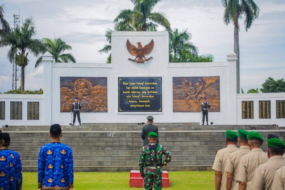 1BRO. KOTA BOGOR — Dalam rangka memperingati Hari Pahlawan Nasional 2025, Wali Kota Bogor Dedie A. Rachim bersama Forkopimda dan Forkopimwil Kota Bogor memimpin Upacara Ziarah Nasional di Taman Makam Pahlawan (TMP) Dreded, Senin (10/11/2025).