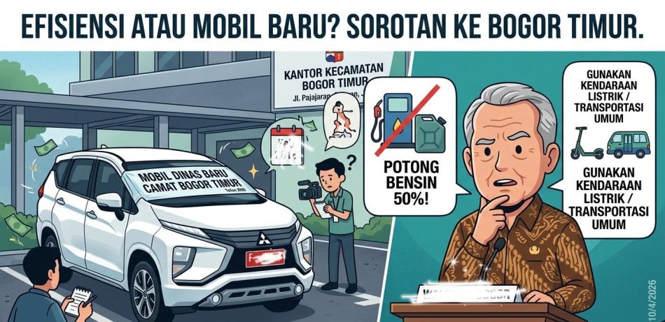 BRO. KOTA BOGOR – Di tengah instruksi efisiensi anggaran yang digaungkan Pemerintah Kota (Pemkot) Bogor, Kecamatan Bogor Timur justru melakukan pembelian mobil dinas (mobdin) baru pada tahun 2026.