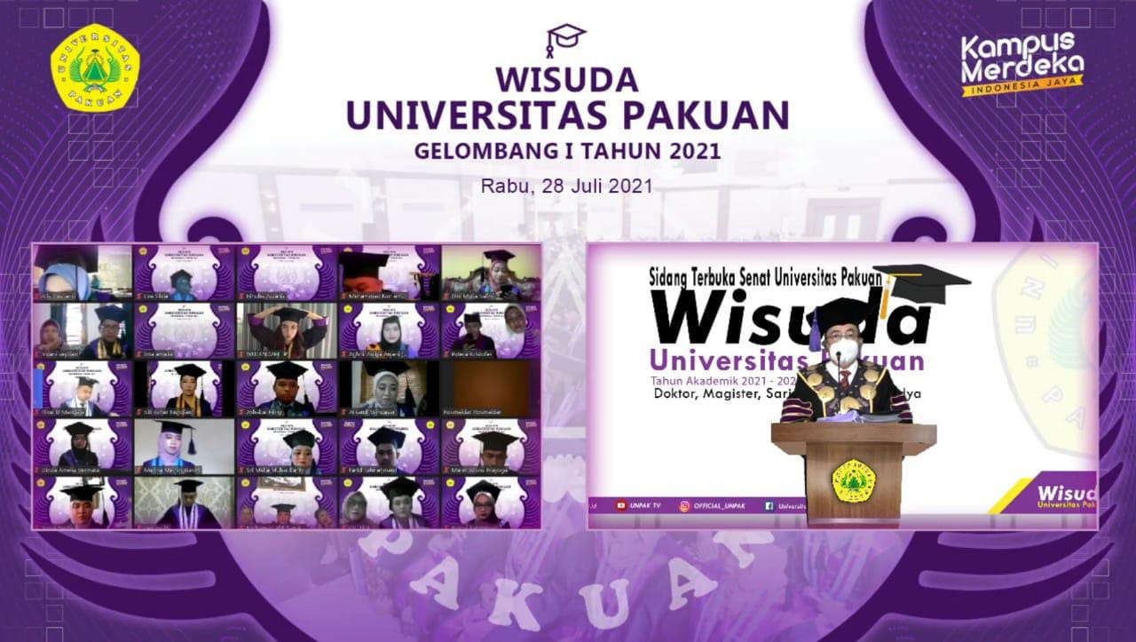 BRO. Universitas Pakuan ( Unpak) Bogor, ditengah suasana pandemi Covid-19, mewisuda sebanyak 815 orang mahasiswanya yang berhasil meraih gelar Magister, Sarjana, dan Ahli Madya tahun 2021 di gelar secara virtual, Rabu (28/07).