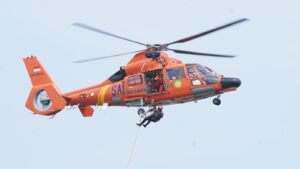 Korban yang mengalami pendarahan pada paha itu telah mendapatkan penanganan medis awal dan sudah terbaring di tandu. Korban di atas perahu karet itu selanjutnya dievakuasi menggunakan teknik hoisting lalu diterbangkan ke RS Yarsi, Jakarta.