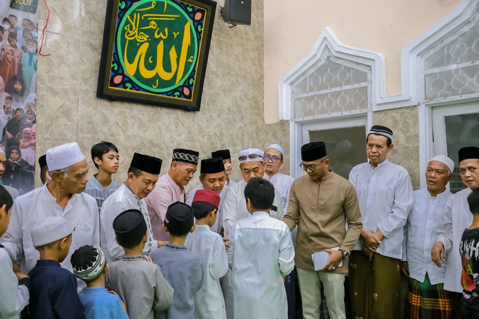 BRO. KOTA BOGOR – Wakil Wali Kota Bogor, Jenal Mutaqin, menyerahkan santunan kepada anak yatim dan kaum dhuafa di Masjid Al Maghfiroh, Kelurahan Sindangrasa, Kecamatan Bogor Timur, Kota Bogor, Minggu (15/3/2026). Kegiatan tersebut digelar pada pekan terakhir Ramadan 1447 Hijriah sebagai bentuk kepedulian sosial kepada masyarakat.