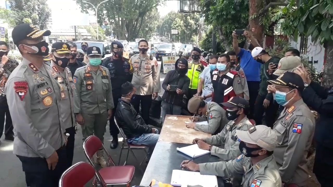 Ketika melakukan inspeksi pelaksanaan Operasi Yustisi di wilayah Kota Bogor, Kapolda Irjen Pol Rudy Sufahriadi, sempat menyaksikan ketegasan petugas melakukan sanksi denda terhadap puluhan pengendara yang terjaring Operasi Yustisi, di Jalan Pajajaran Kota Bogor Jum’at pagi (25/9/2020), lantaran tidak menggunakan Masker.