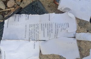 Selembar Kertas yang sudah robek, akhirnya indentitas pemuan mayat di Sungai Ciliwung Bogor, terkuak, Jum’at Subuh (16/12).Foto : Syamsul.SiBro