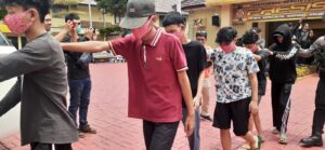 tersangka FG diduga pelaku( kaos hitam) pembacok saat duel dengan korban FR tewas alibat sabetan Clurit, saat Tawuran terjadi, Sabtu (17/9). dini hari. Foto : Benk.SiBro