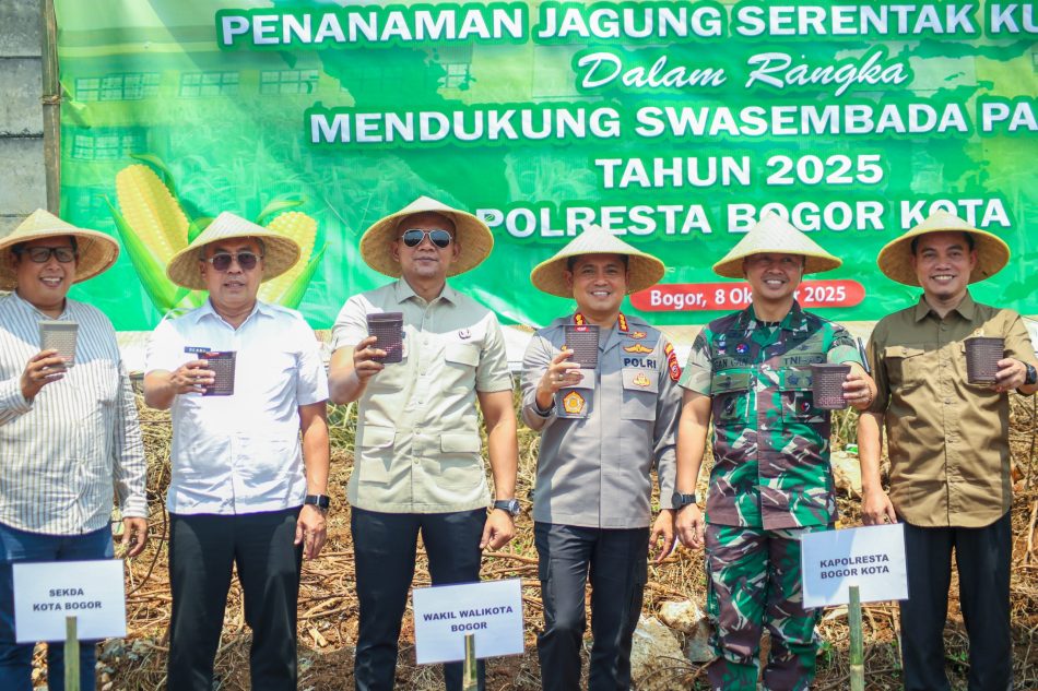 BRO. KOTA BOGOR – Pemerintah Kota (Pemkot) Bogor menyatakan dukungan penuh terhadap program swasembada pangan yang diinisiasi Polri. Dukungan tersebut disampaikan Wakil Wali Kota Bogor, Jenal Mutaqin, saat menghadiri kegiatan penanaman bibit jagung kuartal IV bersama jajaran Polresta Bogor Kota di Kelurahan Sukadamai, Kecamatan Tanah Sareal, Rabu (8/10/2025).