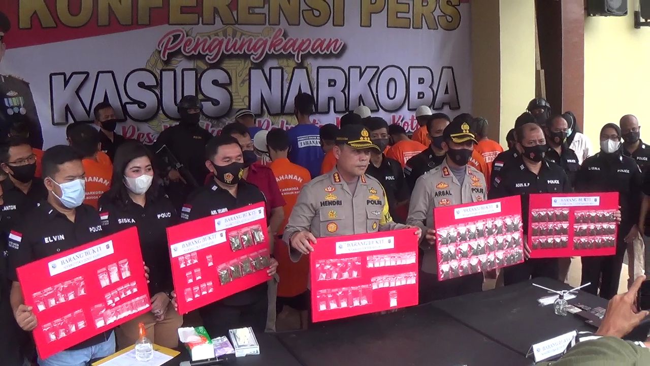 ” Dari 18 kasus jumlah tersangkanya ada 21 orang. Para pengedar narkoba ini ditangkap di sejumlah wilayah di kota Bogor,” ungkap Kapolres Bogor Kota, Kombes Pol Hendri Fiuser, kepada wartawan dalam jumpa pers, Rabu (02/12).