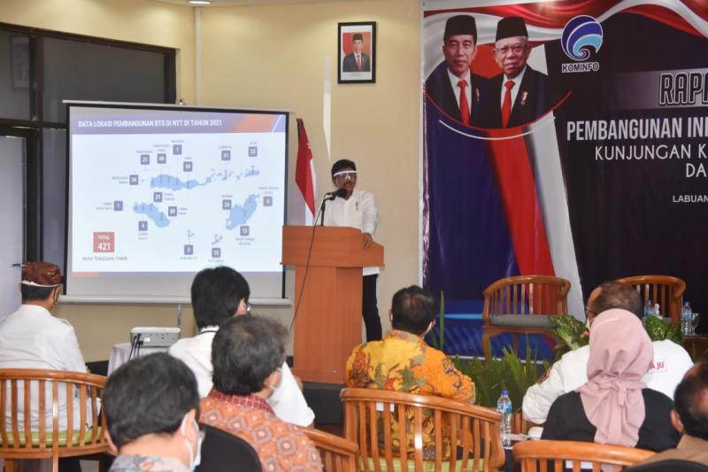 ” Kementerian Kominfo untuk memastikan ketersediaan infrastruktur TIK di-deploy secara memadai baik dari rasio internetifikasi maupun dipasritas internet antarwilayah. Di mana masih ada 12.548 desa di seluruh Indonesia yang belum terjangkau sinyal 4G dan sekitar 150.000 titik layanan publik yang belum terjangkau akses Internet cepat,” paparnya dalam Rapat Koordinasi Dukungan Pembangunan Infrastruktur Telekomunikasi di Wilayah Pariwisata Super Prioritas Provinsi Nusa Tenggara Timur, di Manggarai Barat, Jum”at (25/09/2020).